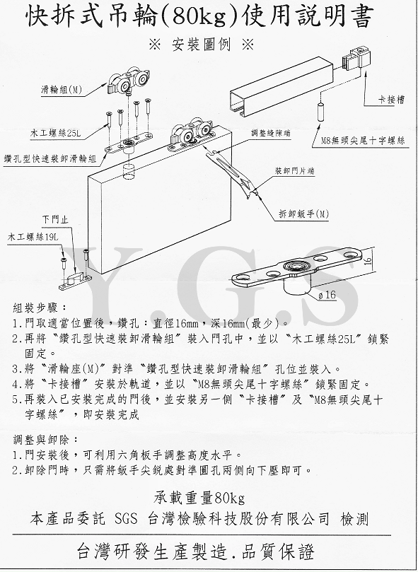拉摺門五金(導輪.軌道.配件)系列(SLIDING-FOLDING DOOR DARDWARE) x 3